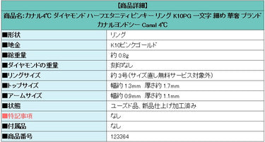 商品名:カナル4℃ ダイヤモンド ハーフエタニティ ピンキー リング K10PG 一文字 細め 華奢 ブランド カナルヨンドシー Canal4℃