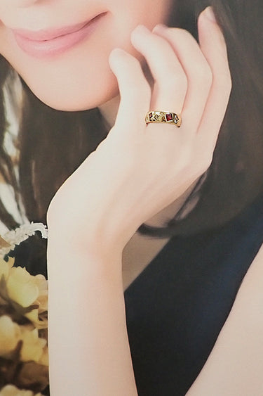 コメント ルジアダの、散りばめられたスクエアモチーフがモダンな雰囲気を感じさせるリングです。ロードライトガーネットの深みと落ち着きのある色合いにイエローゴールドの組み合わせがエレガントな印象を高めてくれます。側面にはさり気なくダイヤモンドがキラリと煌めきます。