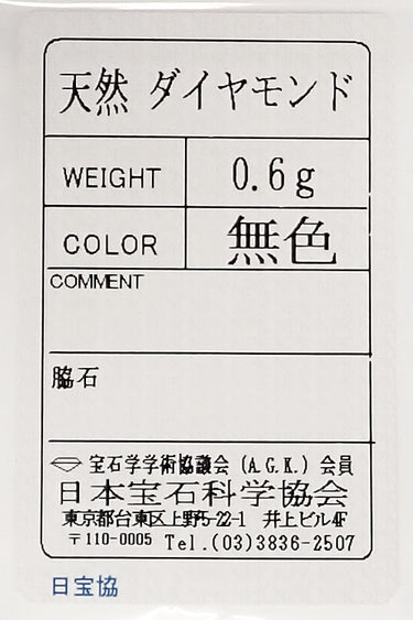 ダイヤモンド 色:ほぼ無色に近い色合い