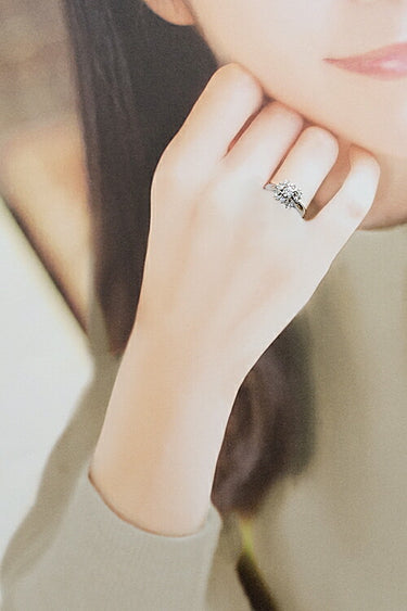 取り巻きのマーキスカットダイヤモンドが、わずかな角度でお手元に繊細な輝きをもたらします