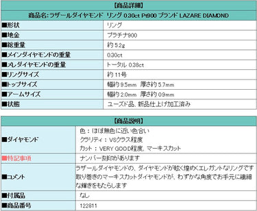 商品名:ラザールダイヤモンド リング 0.30ct Pt900 ブランド LAZARE DIAMOND