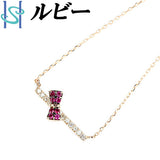 商品名:ルビー ネックレス ダイヤモンド K18PG リボン ブラックメッキ