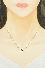 深いピンキッシュレッドの色合いのルビーとブラックメッキがアクセントのリボンモチーフのネックレスです
