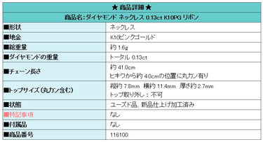 商品名:ダイヤモンド ネックレス 0.13ct K10PG リボン