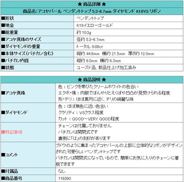 商品名:アコヤパール ペンダントトップ 5.3-6.7mm ダイヤモンド K18YG リボン