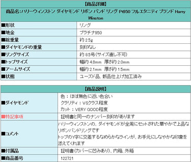 商品名:ハリーウィンストン ダイヤモンド リボン バンド リング Pt950 フルエタニティ ブランド Harry Winston