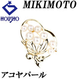 ミキモト アコヤパール ブローチ 5.6mm-7.3mm K14YG 葉 リーフ ボタニカル リボン 透かし ブランド MIKIMOTO | 14金 あこや真珠 白真珠 和珠 上品 エレガント かわいい おしゃれ【中古】【SH122750】