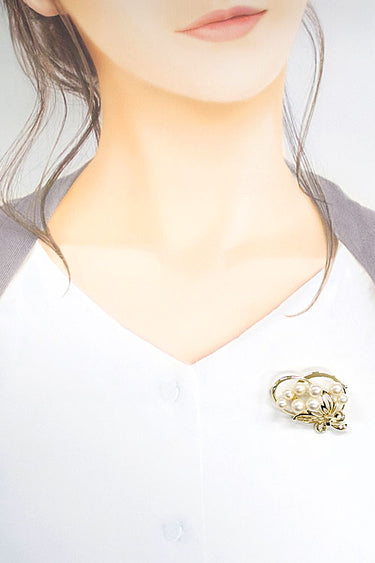 ミキモトの、あたたかな色合いのアコヤパールがセットされたエレガントなブローチです