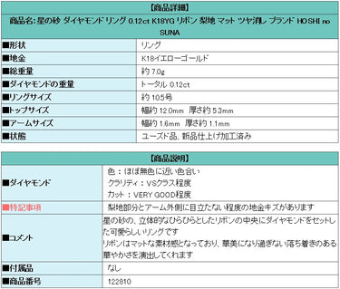 商品名:星の砂 ダイヤモンド リング 0.12ct K18YG リボン 梨地 マット ツヤ消し ブランド HOSHI no SUNA