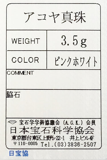 アコヤ真珠 色:ピンクを帯びたクリームホワイトの色合い