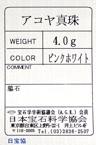 アコヤ真珠 色:ピンクを帯びたクリームホワイトの色合い