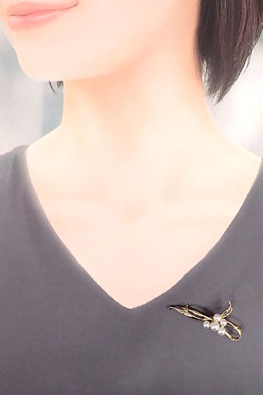 コメント ミキモトの、まろやかな輝きでふんわり華やぐ、アコヤパールのブローチです。細くしなやかなリボンモチーフが、フェミニンなニュアンスをもたらします。