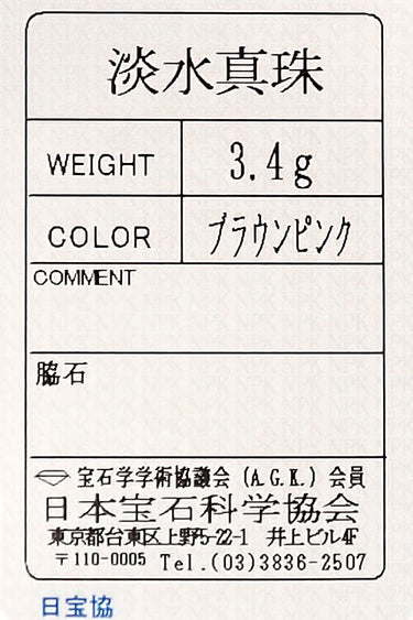 淡水真珠 色:ブラウンを帯びたピンクの色合い