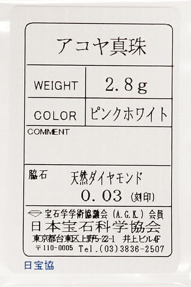 アコヤ真珠 色:ピンクを帯びたクリームホワイトの色合い