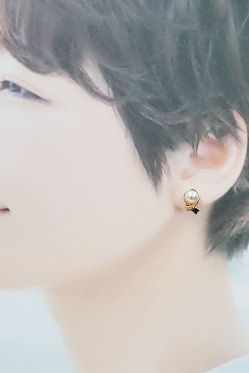 ミキモト アコヤ真珠 ピアス K18イエローゴールド MIKIMOTO リボン 一粒パール【中古】【904350】