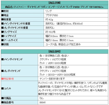 商品名:ティファニー ダイヤモンド リボン エンゲージメント リング Pt950 ブランド TIFFANY&Co.