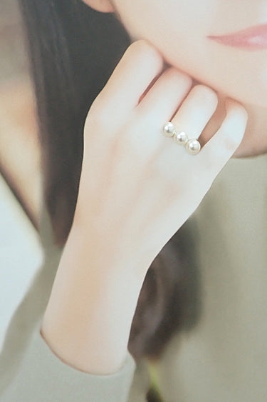 コメント タサキの、直線的にあしらわれた3粒のアコヤパールが、モダンな雰囲気のバランスエラのリングです。スッキリとしたデザインのリングが、アコヤパールの存在感を際立たせます。