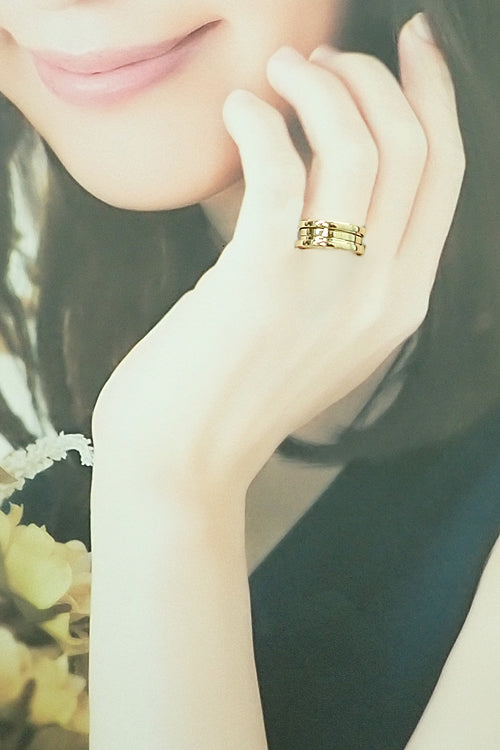 コメント ブルガリの人気ライン、辛口でクールな雰囲気のビーゼロワンシリーズの3バンドリングです。幅広のイエローゴールドのリングが華やかな存在感を放ちます。