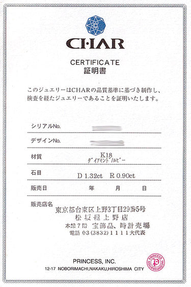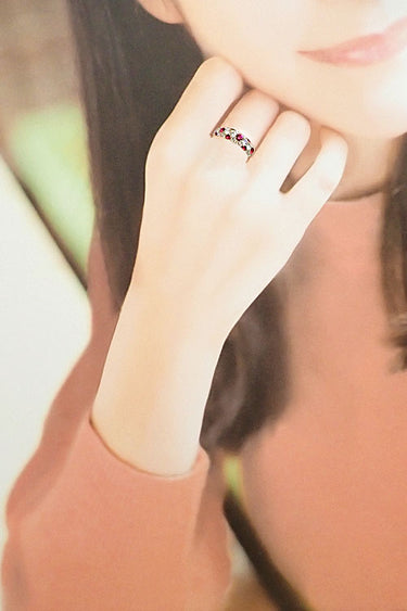 コメント チャーの、ドット模様のようにセットされたルビーとダイヤモンドがゴージャスな輝きを放つ、ふっくらとしたフォルムのリングです。裏抜きは蜂の巣のような六角形のハニカム構造となっており、光をたっぷりと取り込むためのこだわりの製法が施されています。