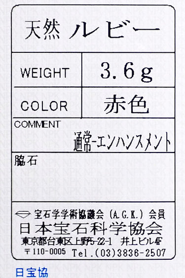 ルビー 色:深いピンキッシュレッドの色合い