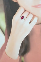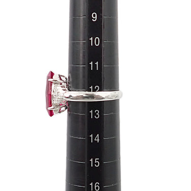 コメント 約4.4ctのスタイリッシュな形の合成ルビーが大胆にあしらわれた、エレガントなリングです。ピンキッシュレッドの情熱的な色合いをお楽しみいただけます。