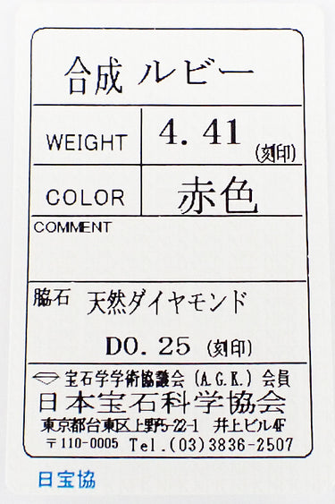 商品名 ルビー リング ダイヤモンド Pt900 合成石