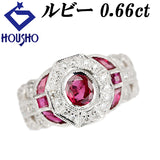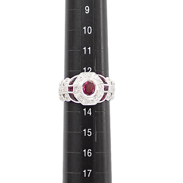 ルビー リング ダイヤモンド Pt900 ミル打ち ミルグレイン太め 幅広【中古】【902590】