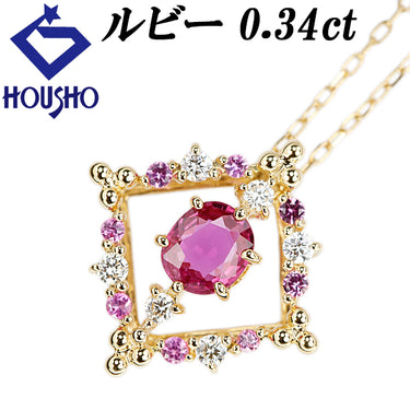 商品名 ルビー ネックレス ダイヤモンド サファイア K18イエローゴールド ひし形 透かし