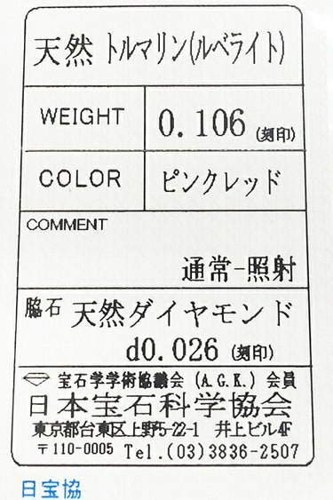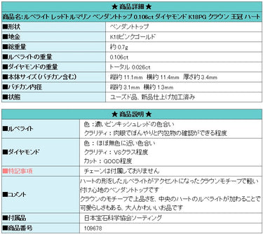 商品名:ルベライト レッドトルマリン ペンダントトップ 0.106ct ダイヤモンド K18PG クラウン 王冠 ハート