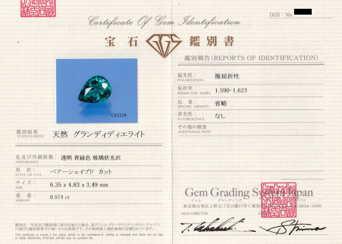 付属品 ジェムグレーディングシステムジャパン鑑別書(カバーなし)