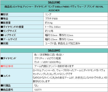 商品名:ロイヤルアッシャー ダイヤモンド リング 0.60ct Pt900 パヴェ ウェーブ ブランド ROYAL ASSCHER