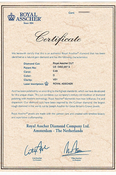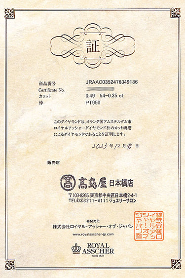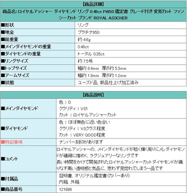 商品名:ロイヤルアッシャー ダイヤモンド リング 0.49ct Pt950 鑑定書 グレード付き 変形カット ファンシーカット ブランド ROYAL ASSCHER