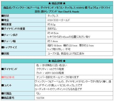 商品名:ヴァンクリーフ&アーペル ダイヤモンド パピヨン ネックレス K18YG 蝶 ちょうちょ バタフライ 昆虫 透かし ブランド Van Cleef & Arpels