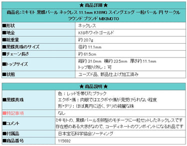 商品名:ミキモト 黒蝶パール ネックレス 11.1mm K18WG スイングエッグ 一粒パール 円 サークル ラウンド ブランド MIKIMOTO