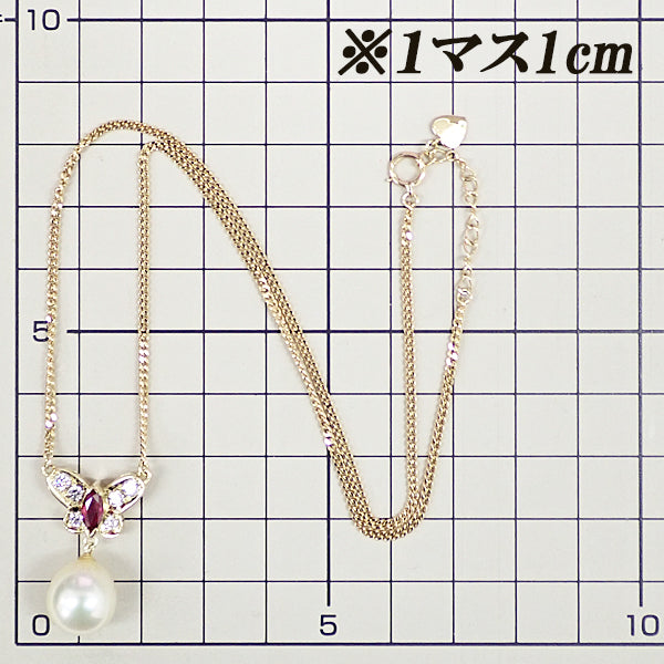 三越 白蝶真珠(南洋真珠) ネックレス ダイヤモンド ルビー K18イエローゴールド MITSUKOSHI 蝶 チョウ バタフライ パピヨン 昆虫 動物 アニマル【中古】【903045】