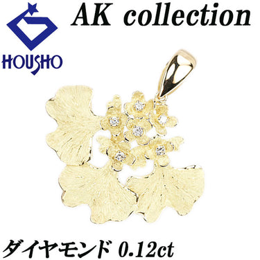 AKコレクション ダイヤモンド ペンダントトップ K18イエローゴールド AK collection 花 フラワー 葉 リーフ 植物 ボタニカル 梨地 ツヤ消し マット【中古】【903462】