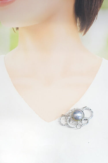 コメント タサキの、魅惑的な色合いの大ぶりなマベパールが目を惹く、サークルモチーフがモダンな印象のエレガントなブローチ兼帯留めです ダイヤモンドもテリが綺麗なものがセットされており、円がバランス良く重なった立体感のあるお品です