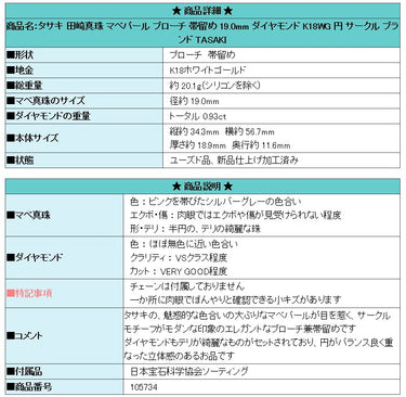 商品名 タサキ ブローチ TASAKI 帯留め 円 サークル