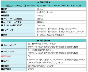エステール ブルートパーズ ブレスレット ムーンストーン K18WG ブランド ESTELLE | 18金 上品 エレガント ゴージャス 豪華 かわいい おしゃれ【中古】【SH105909】