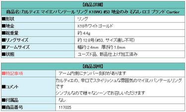 商品名:カルティエ マイヨンパンテール リング K18WG #53 地金のみ 石なし ロゴ ブランド Cartier