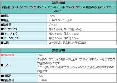商品名:グッチ GG ランニング リング K18YG #9 ボール スタッズ ダブルG 地金のみ 石なし ブランド GUCCI