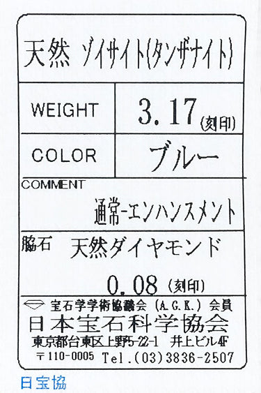 タンザナイトの重量 3.17ct