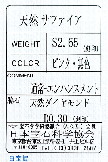 付属品 日本宝石科学協会ソーティング