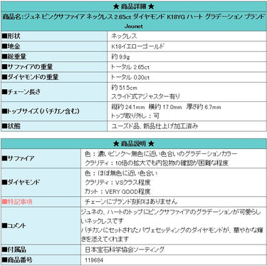 コメント ジュネの、ハートのトップにピンクサファイアのグラデーションが可愛らしいネックレスです バチカンにセットされたパヴェセッティングのダイヤモンドが、華やかな輝きを添えてくれます