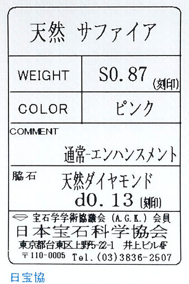 付属品 日本宝石科学協会ソーティング