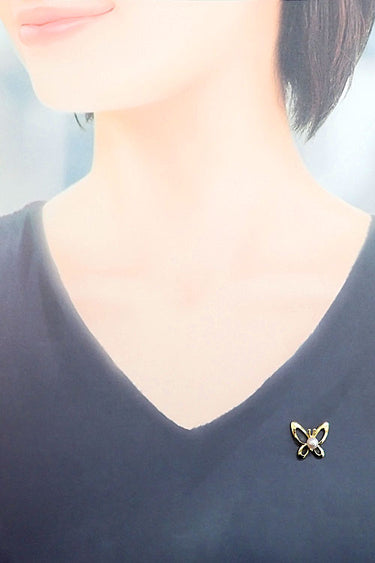 コメント ミキモトの、やわらかな血色感のあるアコヤパールがあしらわれたピンブローチです。透かしのバタフライモチーフが、フェミニンでエレガントな印象を生み出します。