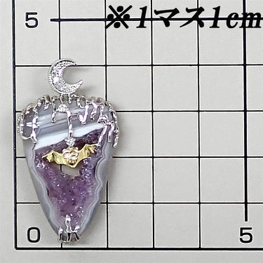 コメント 洞窟からコウモリが飛び立つシーンを表現した、ユニークな雰囲気のペンダントトップです。アゲートの色合いが薄暗い夜を想像させる、美しくもミステリアスな一品です。