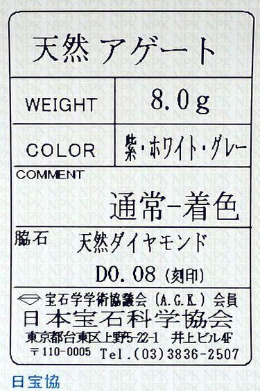 アゲート 色:明るいグレー、淡いパープル、ホワイトの色合い