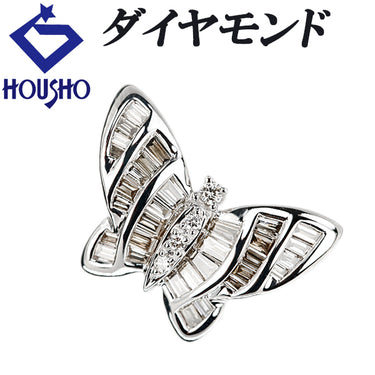 ダイヤモンド ペンダントトップ K18ホワイトゴールド 蝶 チョウ バタフライ パピヨン 昆虫 動物 アニマル テーパーカット 変形カット ファンシーカット【中古】【904347】