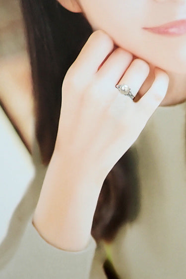 コメント タサキの、艶やかなアコヤパールにメレダイヤモンドを添えた、スタンダードなデザインのリングです。シンプルで洗練された上品さのただようお品です。